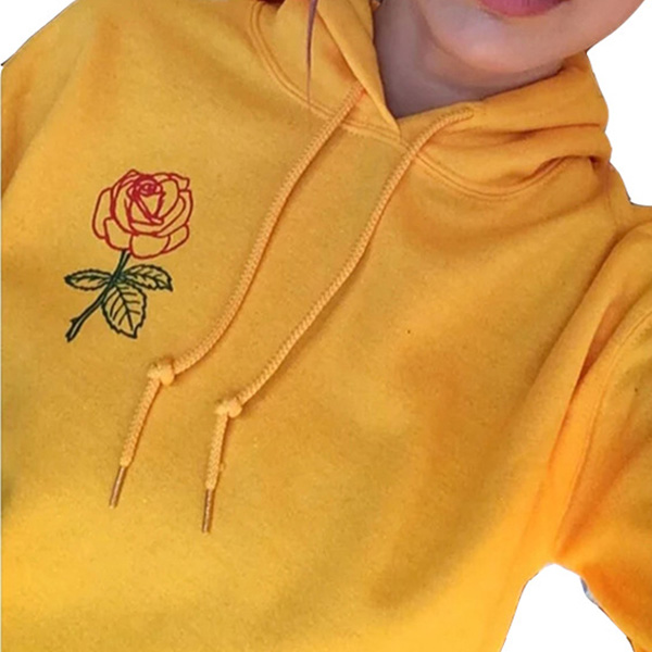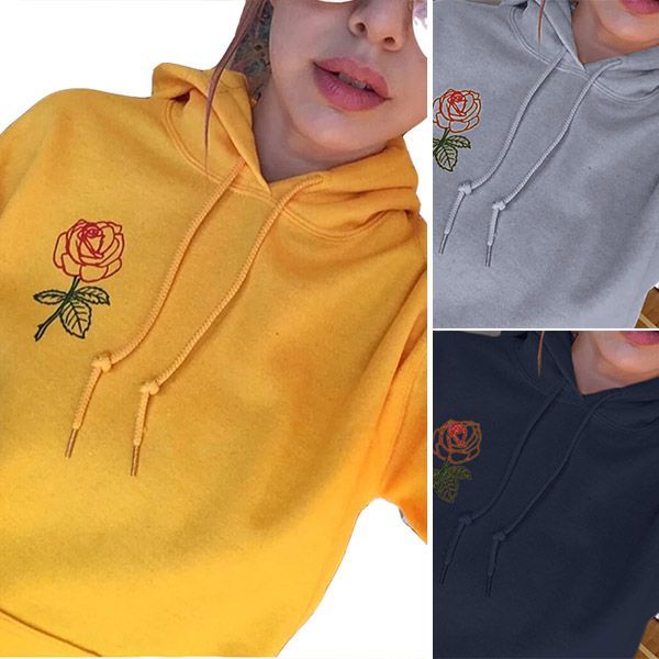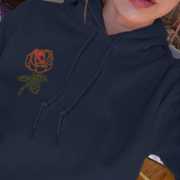 Complete your laid-back look with this hoodie! The solid color tone with rose printed pattern design