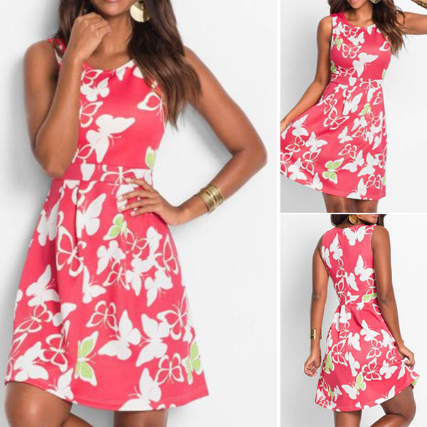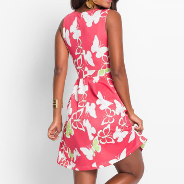 This butterfly print sleeveless dress is full of vibrant and rich colors, breathing life into your dress collection.