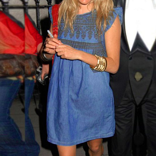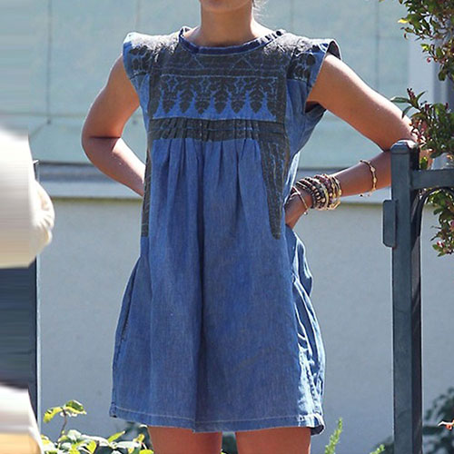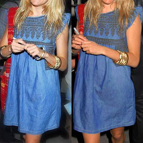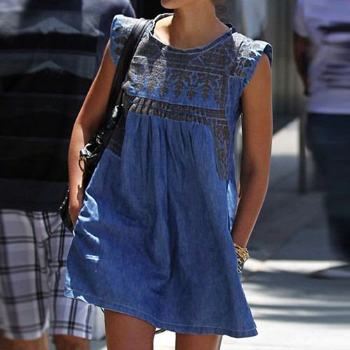 As a fashion girl, how could you lack of a denim dress in your wardrobe? Featuring round neck,