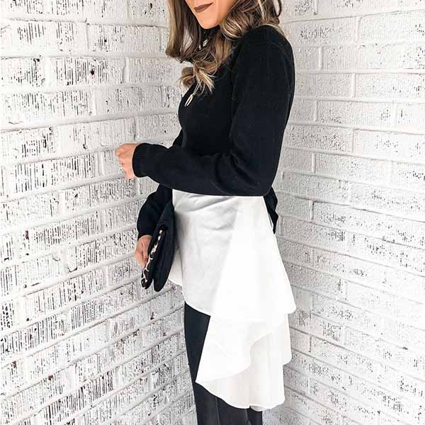 Rock a trendy yet feminine look in this long sleeve top! Craft from fit-and-flare silhouette with a spliced contrast
