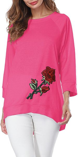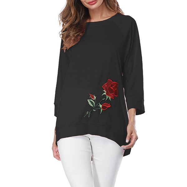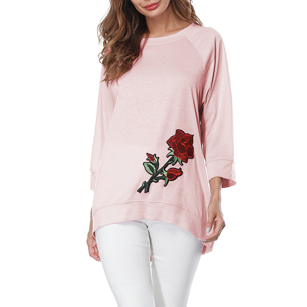 and long sleeve,simple but fashionable. Soft ad cozy material can give you all day comfort.Rose embroidered