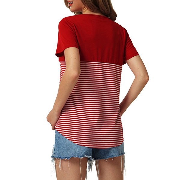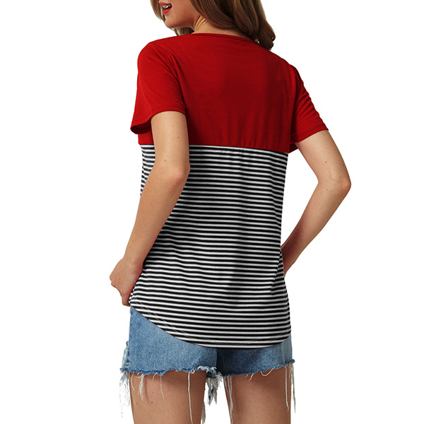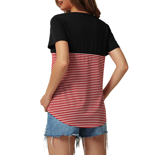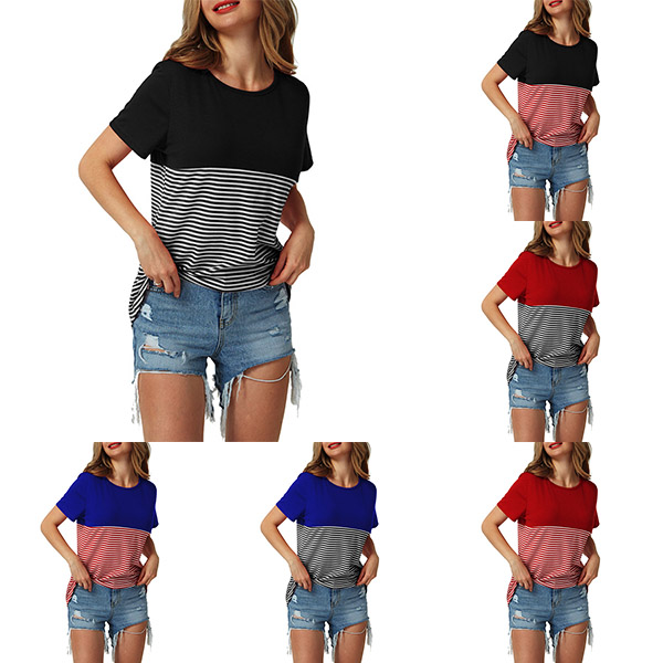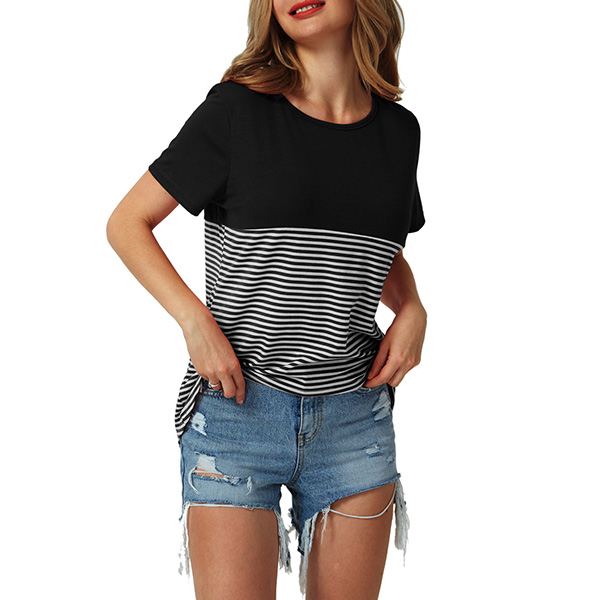 Run your busy day to the silent night with style in this stripe spliced short sleeve top! The stripe spliced top
