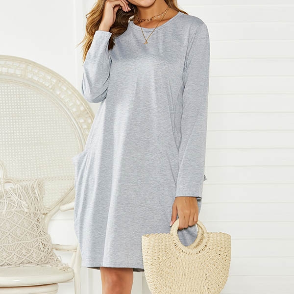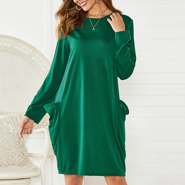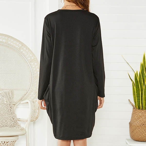 Look,what a fashion dress it is!Comes with a solid color tone,it is finished with round neck
