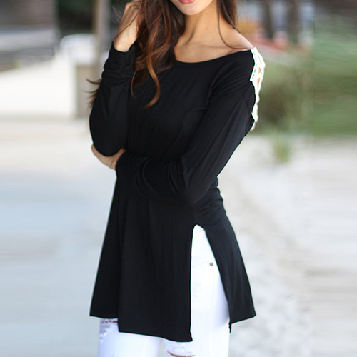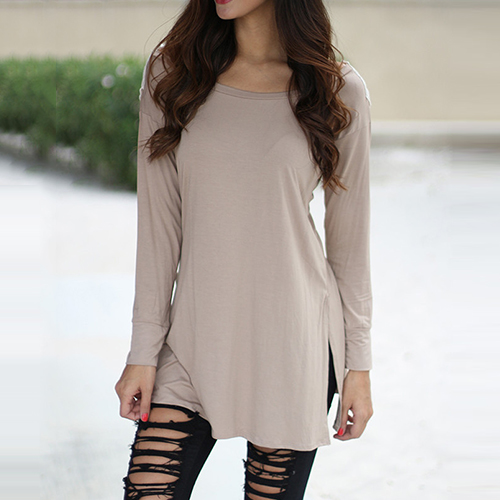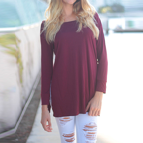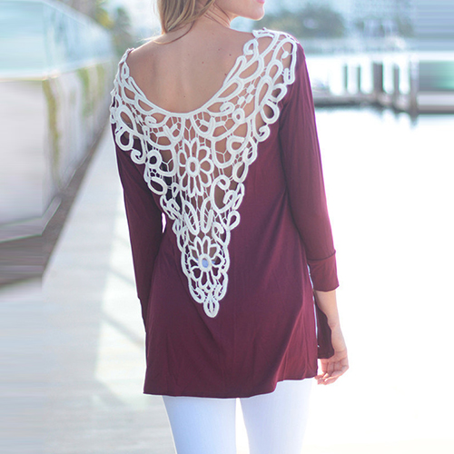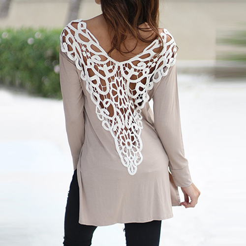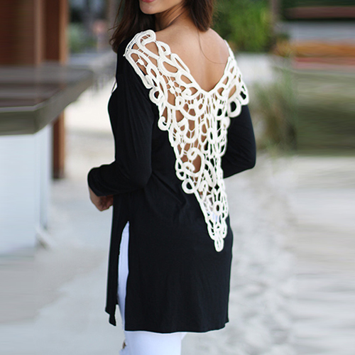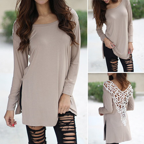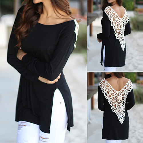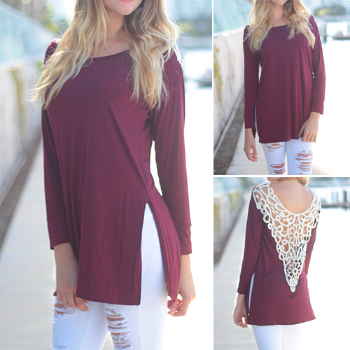 your sexy back. It is outfitted with round neck, long sleeve and irregular hem design, a relaxed style,