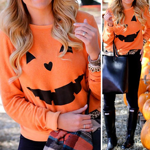 Take participate in your happy Halloween party with this sweatshirt. Printed style, a cute pumpkin