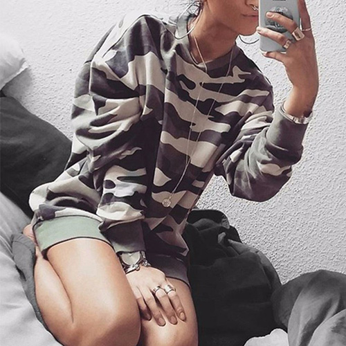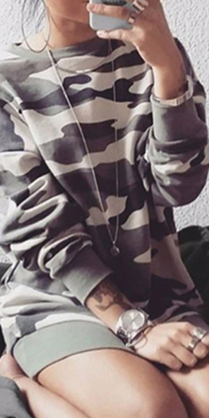 Add your fashion style appeal with the camouflage series. A loose-fitting silhouette is completed with round