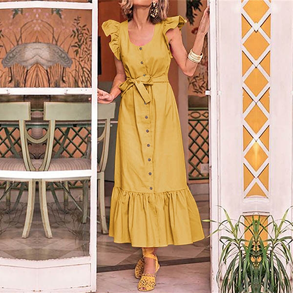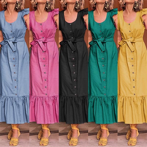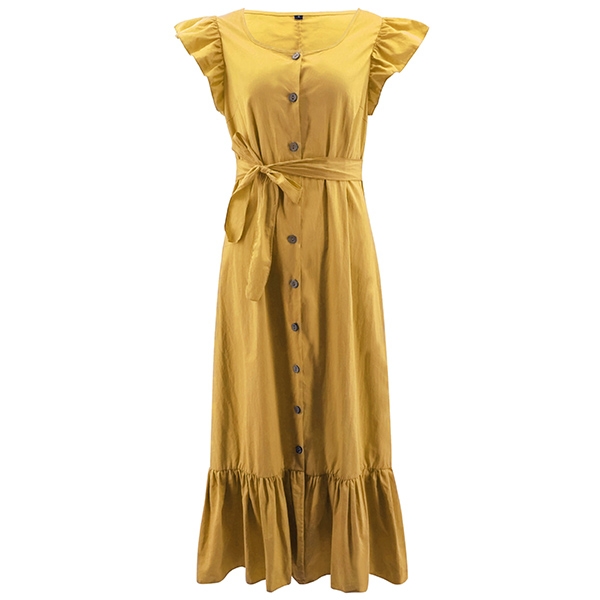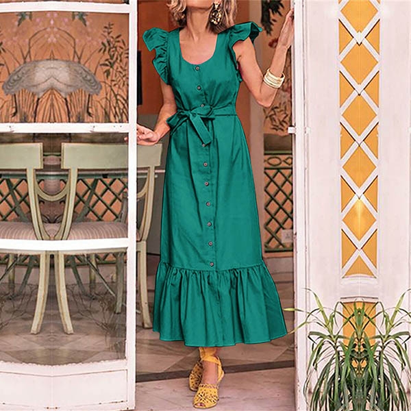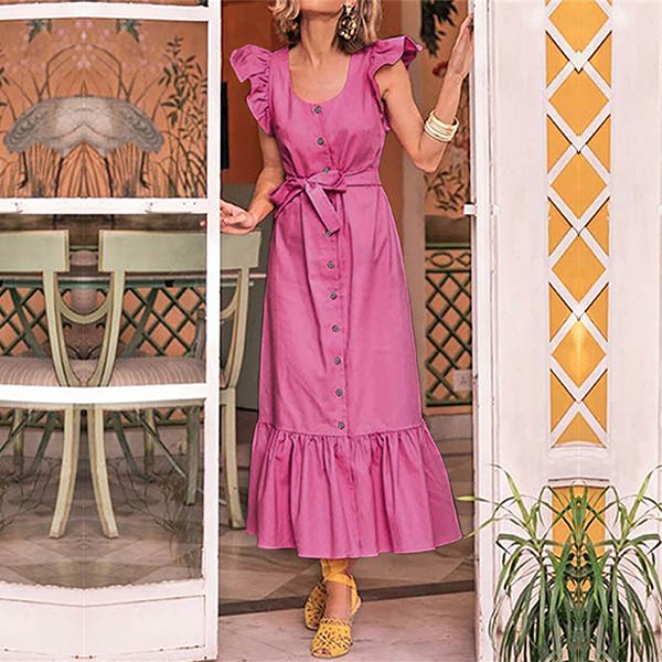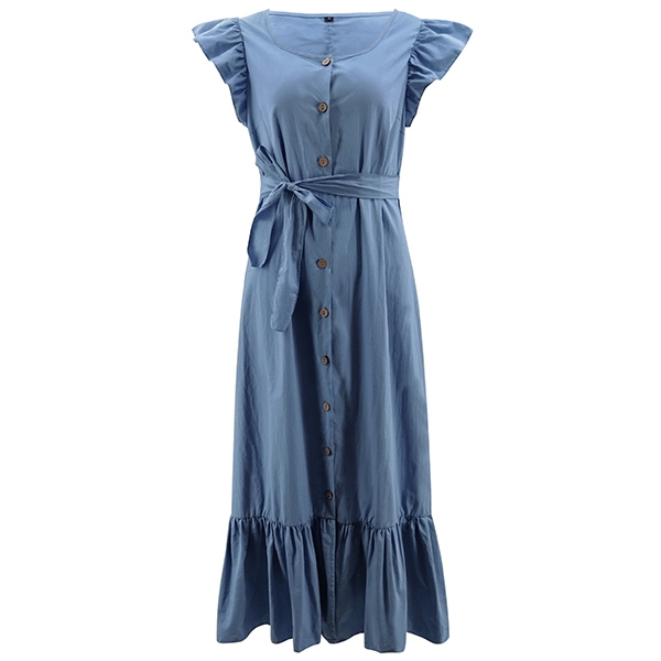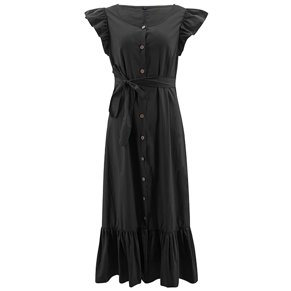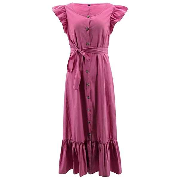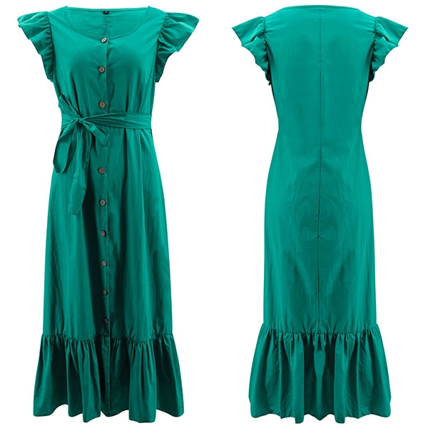with round neck,lotus sleeve and solid color design.stylish yet feminine. The waist strap