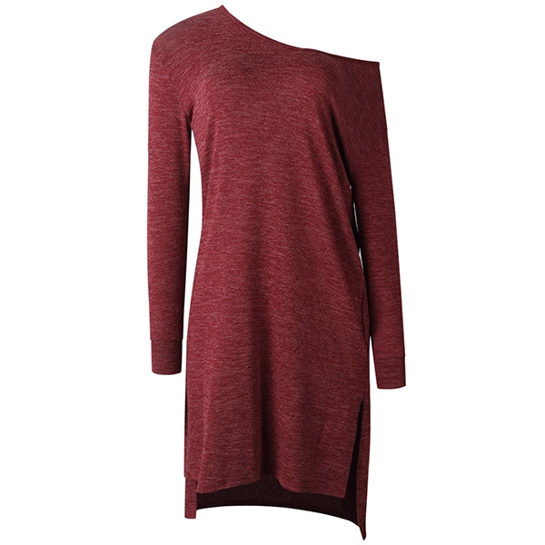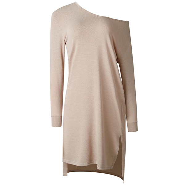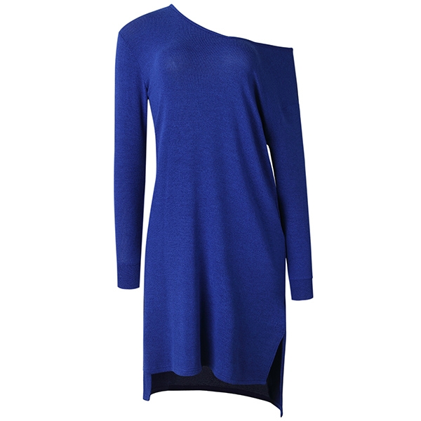 Easy to achieve for a feminine and charming look with this dress. Solid color style,its oblique shoulder