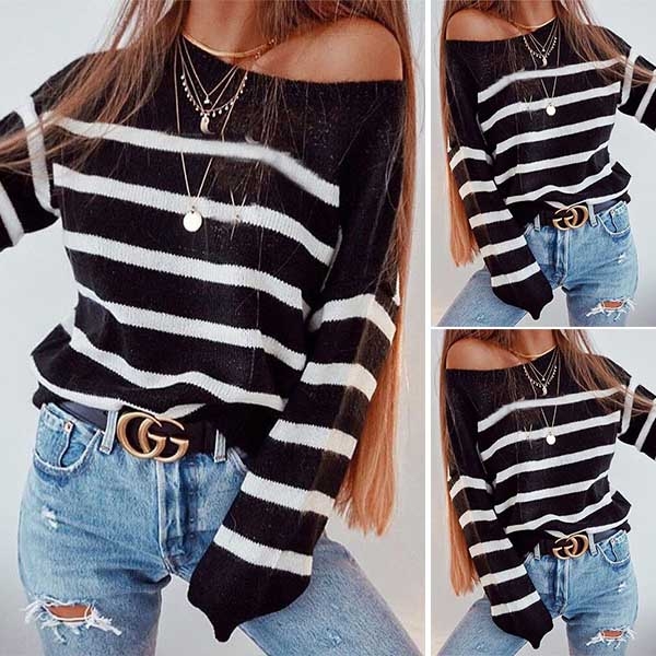 stripe sweatshirt. The sweatshirt feature a loose silhouette with an allover black-white stripe print,