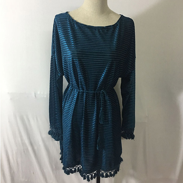 warm and soft fabric, feature a relaxed silhouette, round neckline, long sleeve, tassel trim accent at