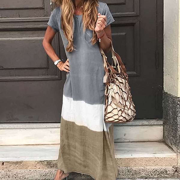To update your wearing style,you can choose this dress.It comes with round neck,short sleeve and