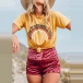 pattern on the shirt, which can make the shirt more fashion and chic.Match a simple shorts,