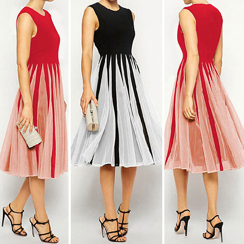 It features round neck and sleeveless patterns, casual and elegant. The key feature is its pleated design, which