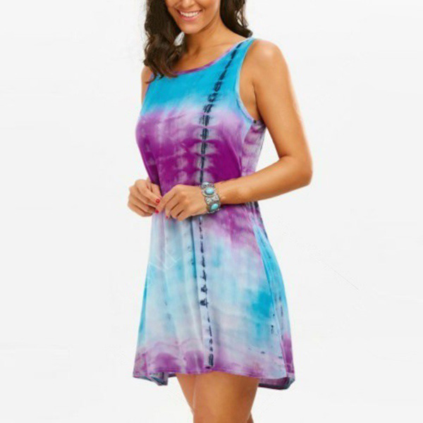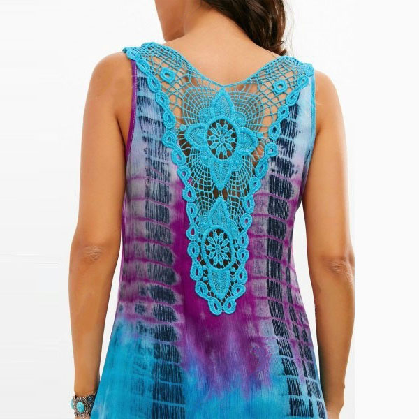Fashion Round-neck Sleeveless Gradient Color Lace Embroidered Dress
