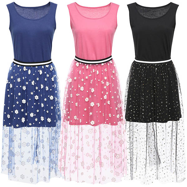 and fabric material woven,with solid color,gauze spliced,sleeveless and printed pattern.Slim fit design