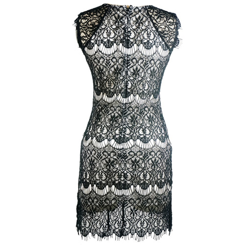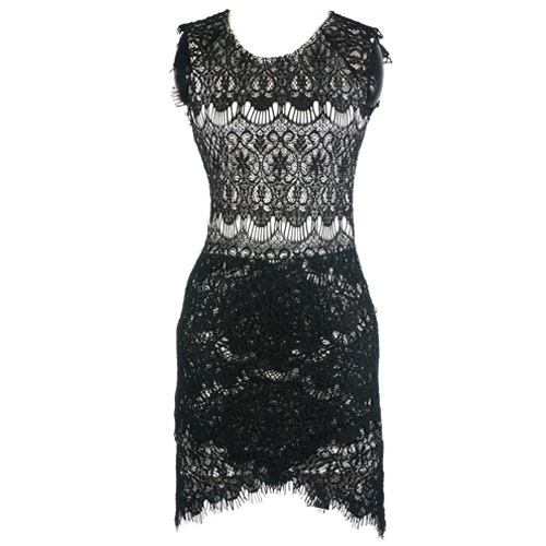 Show your charming style and slender figure through this lace dress. It features round neck,