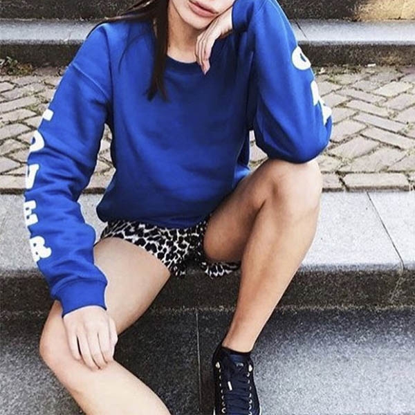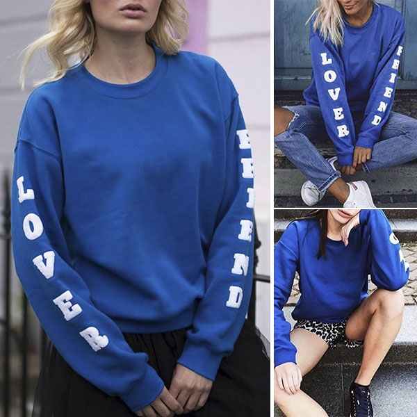 feature with a loose silhouette, ribbed trim, round neckline and long sleeves, come with letters ”lover”
