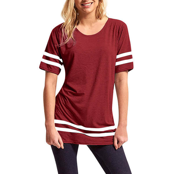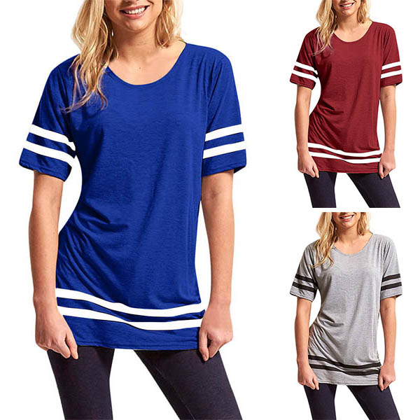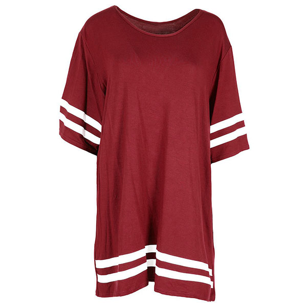 Solid color style, with round-neck and short sleeve,simple but fashionable.Striped design which is good to decorate