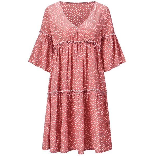 It features floral print details,the trumpet sleeve and v-neck design can offer you a more charming look.