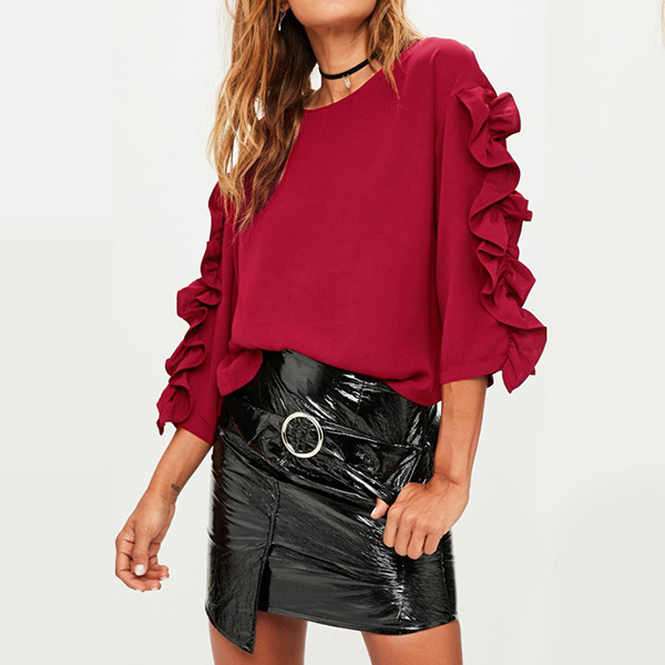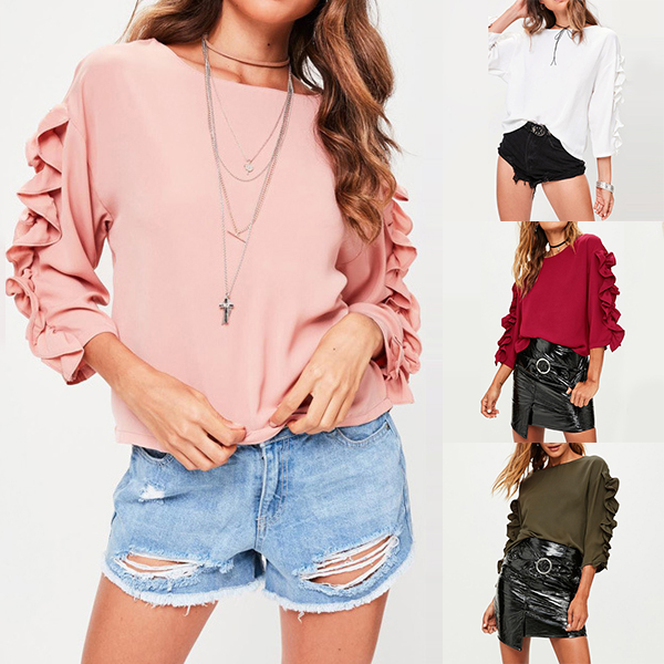 design? It is the 3/4 sleeve with ruffle spliced design! Comfortable to wear and easy to match,this t-shirt is your wardrobe staple.