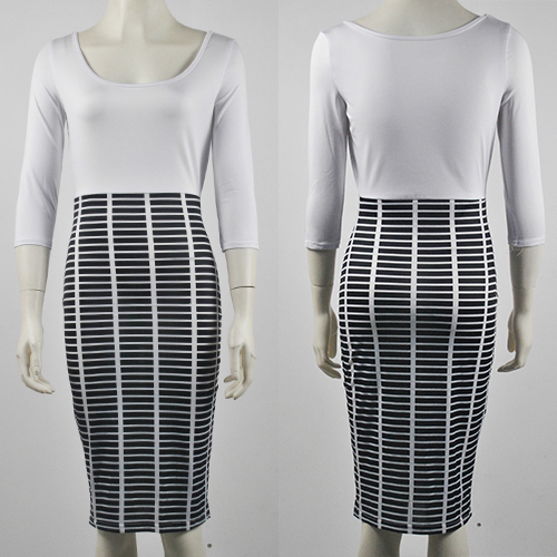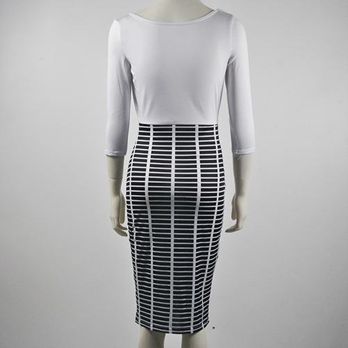 which makes it look more fashionable. It is worth mentioning that this dress is spliced with vertical and parallel stripes.