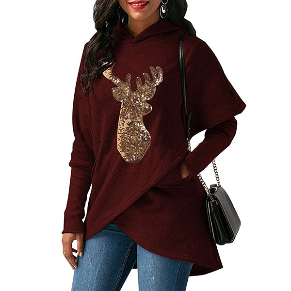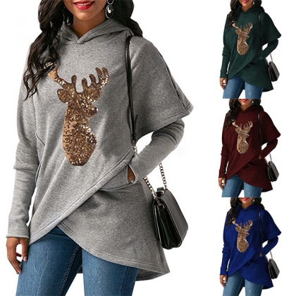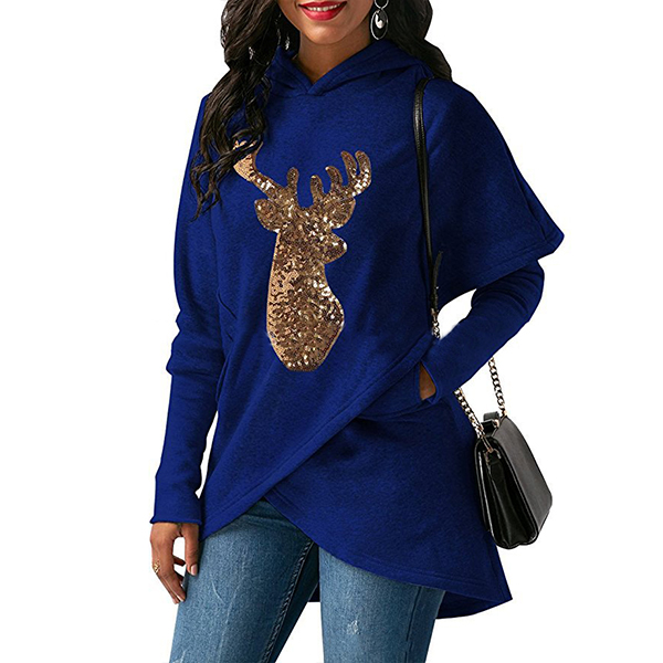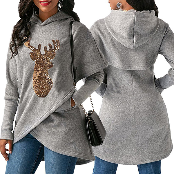 Your casual style can have an updated with this chic hoodie. Solid color style,decorated with sequin elk pattern