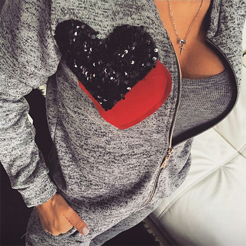 the best for you. Made of the best material, with sequin heart-shaped printed, front zipper