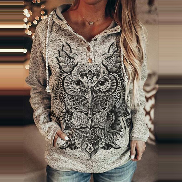 Fashion Owl Pattern Long Sleeve Round Neck T-shirt