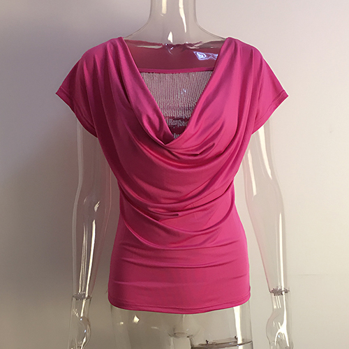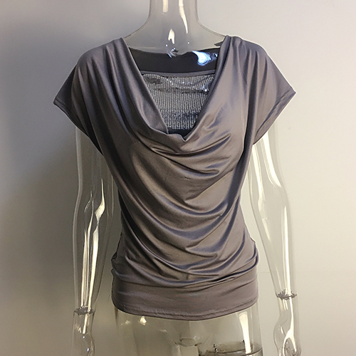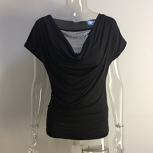 Mock two-piece style,its sequin spliced and cowl neck design makes this t-shirt look so chic