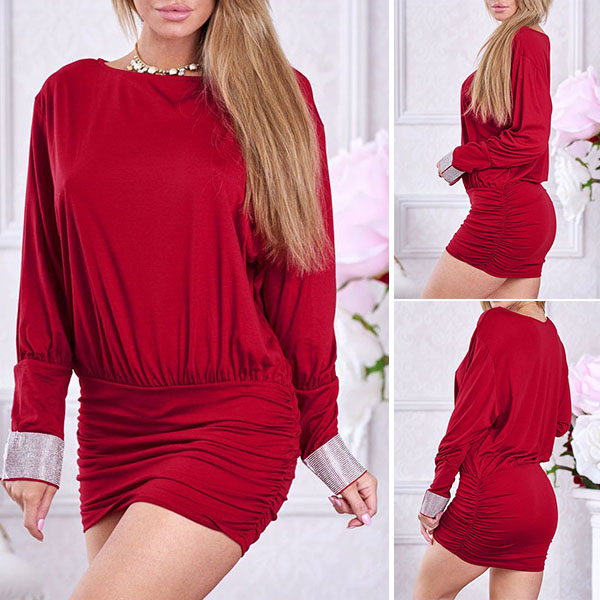 This dress comes with a bright red tone,which can help you win more eyes. Finished with long sleeve,