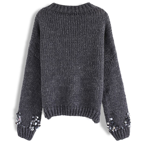 round neck and a clean silhouette,classic yet stylish. The sequin spliced design will make this piece look