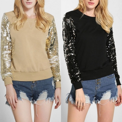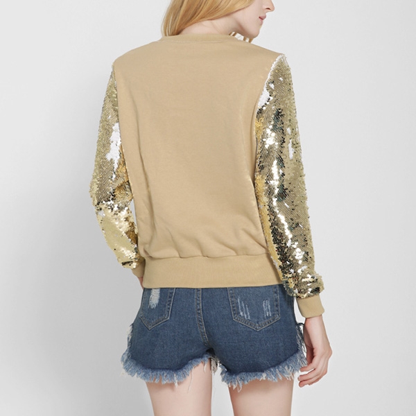 Except for the cozy,this sweatshirt can bring you more is the style. The sequin spliced long sleeve design