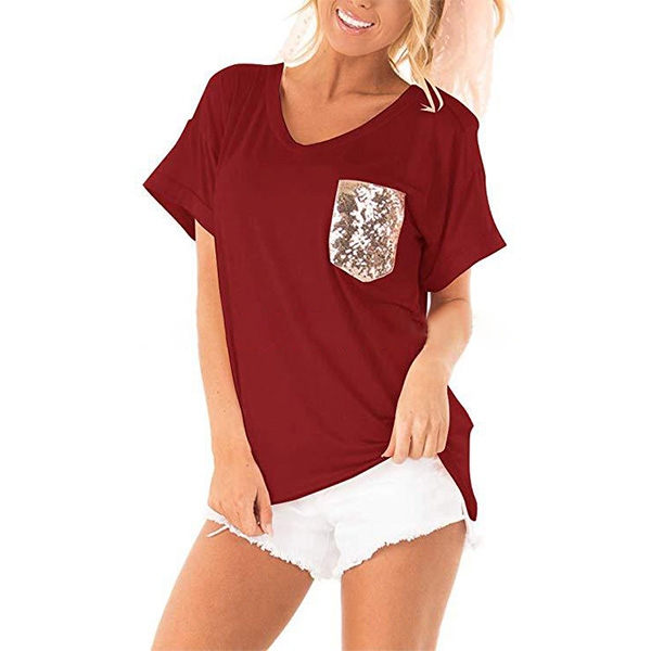 Comes with a solid color,the sequin spliced chest patch pocket design enriches the design style as