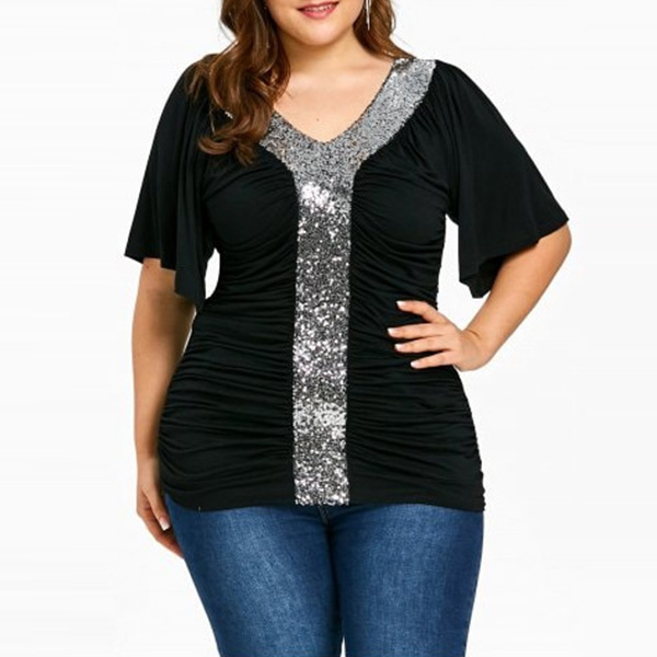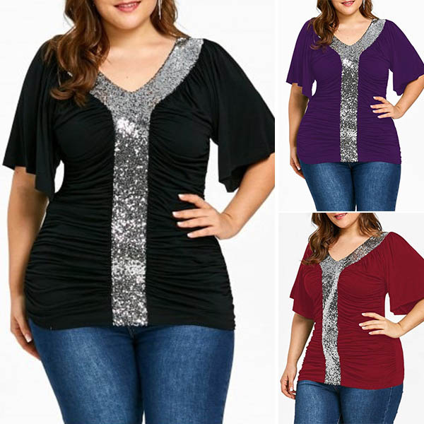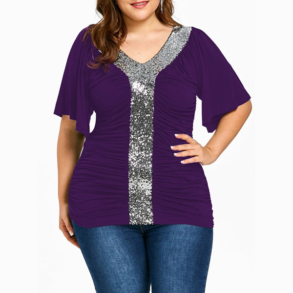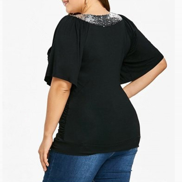 to offer you a comfortable day. Moreover,the sequin spliced design makes this piece look more attractive.