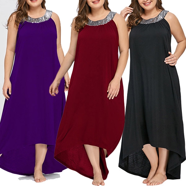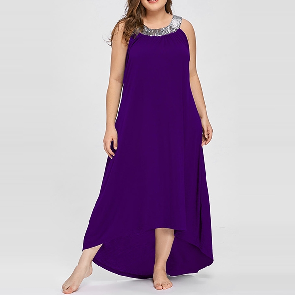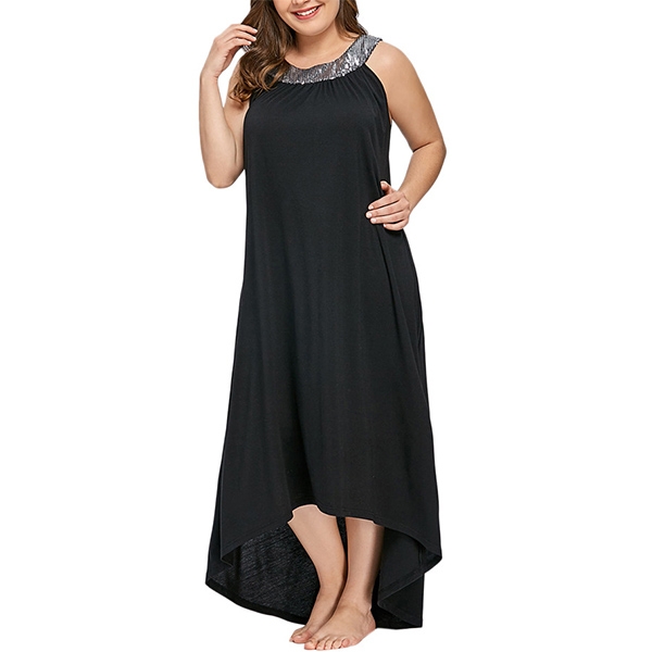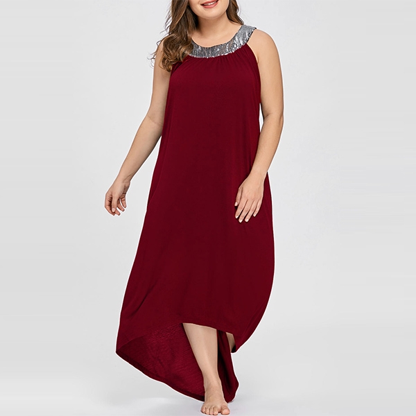 This oversized dress is finished with sleeveless,round neck and a high-low hem,chic yet stylish.