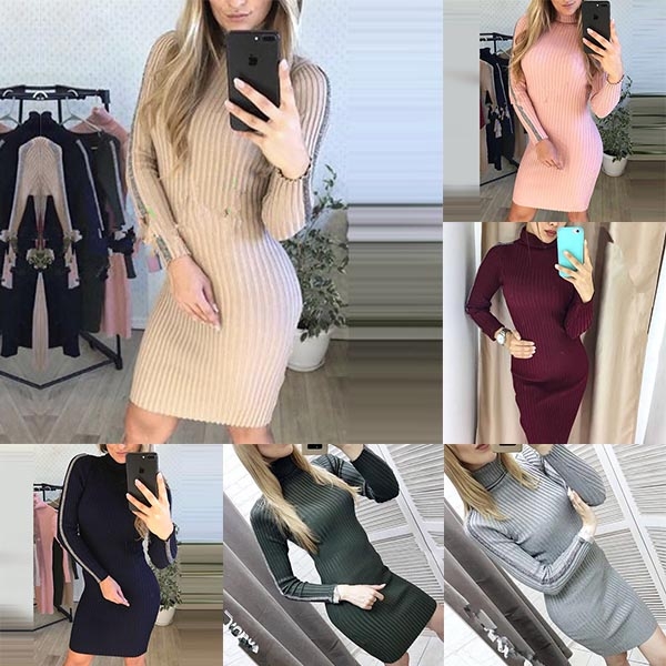 Hit the cold season with this knit dress. Finished with long sleeve,turtleneck and a tight silhouette,