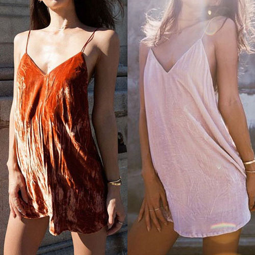 The sling dress with solid color and V-neck patterns, which can make you looks very beautiful and charming. The backless design