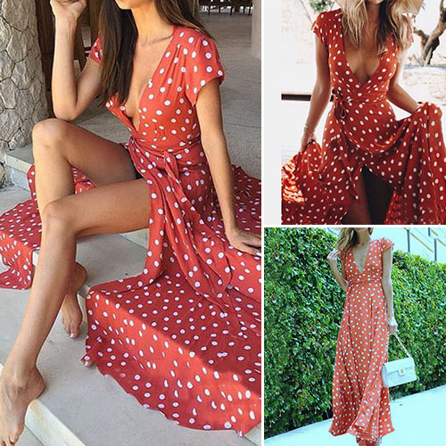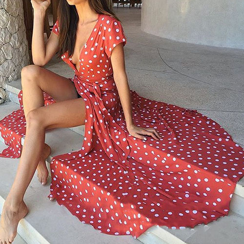 There is no doubt that you would be the focus of the sight when you slip on this dress walking in the street. It is outfitted with dots
