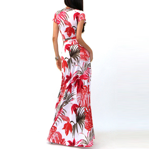 deep V-neck short sleeve design, which is filled with sexy and seductive elements. The maxi length style