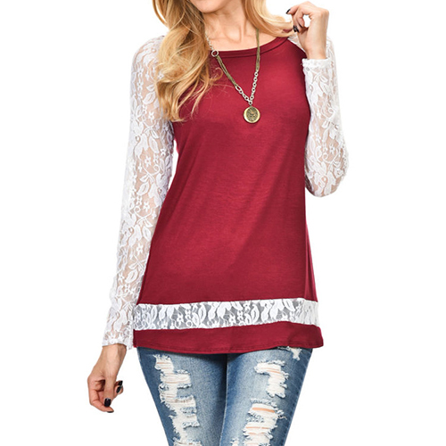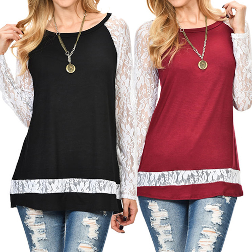 The tops features lace spliced design and hollow out long sleeve patterns, stylish and unique.