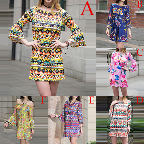 This elegant and sexy dress is completed with printed patterns, with off-shoulder and flare sleeve design, which can be a