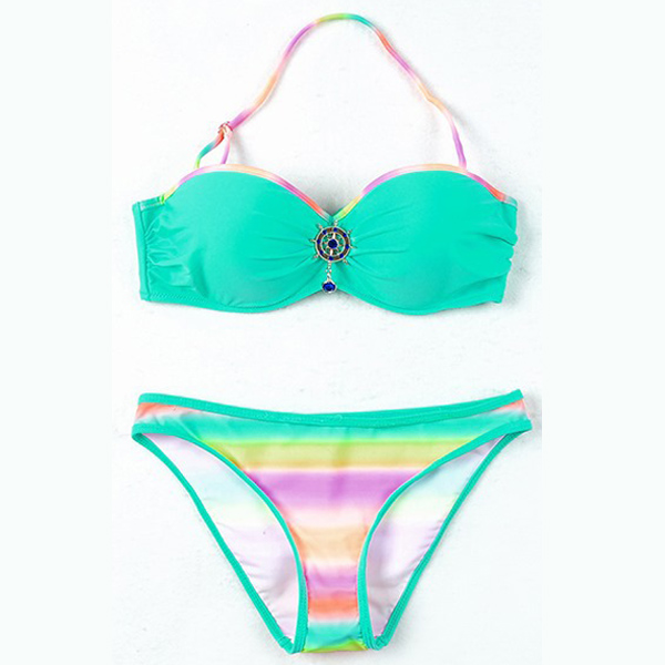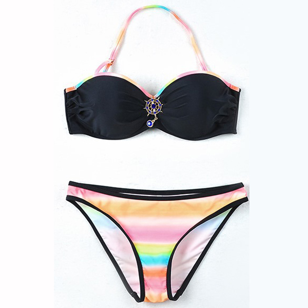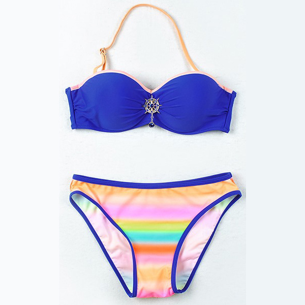 Can you imagine that you are lazing around in the sun all clad in this demure bikini set that flaunts a matching top and bottom,