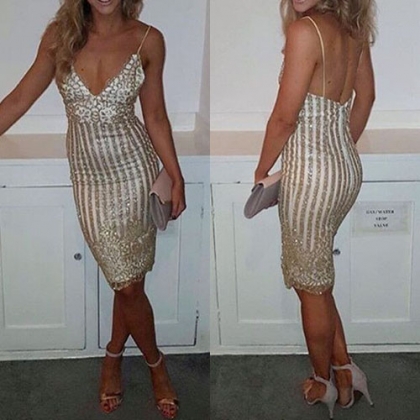Such a sexy and charming sling dress, you can't miss it. It is completed with deep V-neck and backless patterns that can be a power