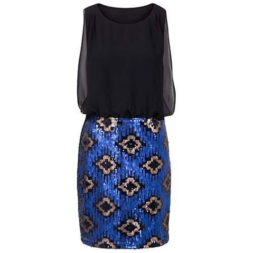 . It is decorated with sequins patterns and sleeveless design, sexy and stylish. The shrink waist can give you a more
