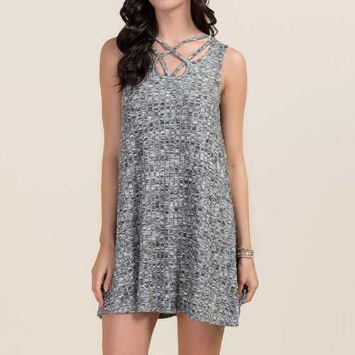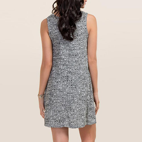 This special dress is decorated with solid color and sleeveless patterns, casual and stylish. The cross V-neck patterns can
