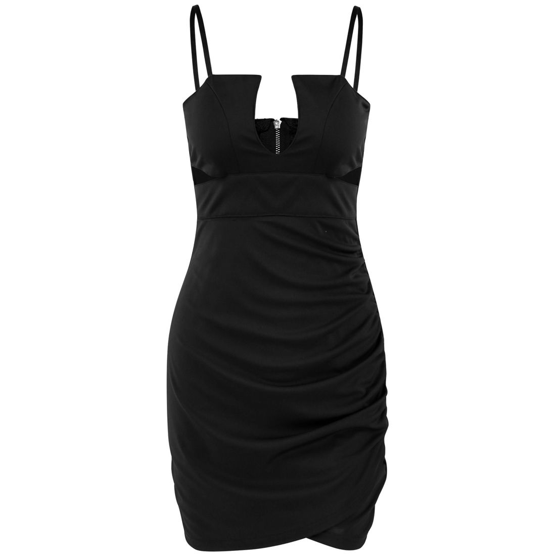wardrobe. The dress is completed with solid color and deep V-neck patterns, with back zipper design