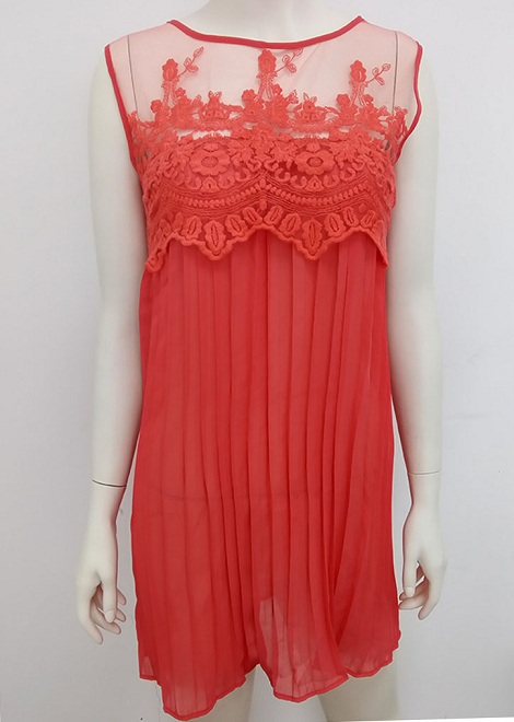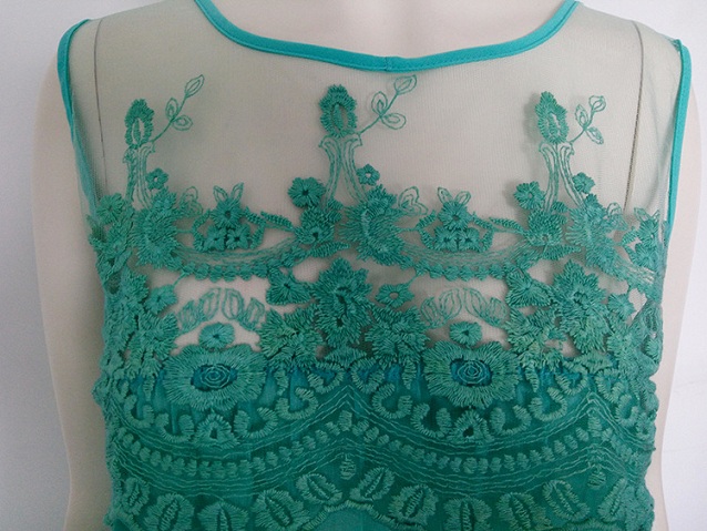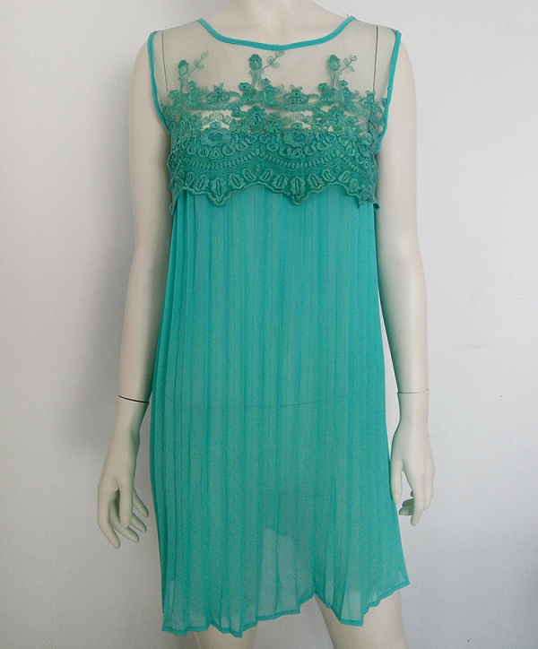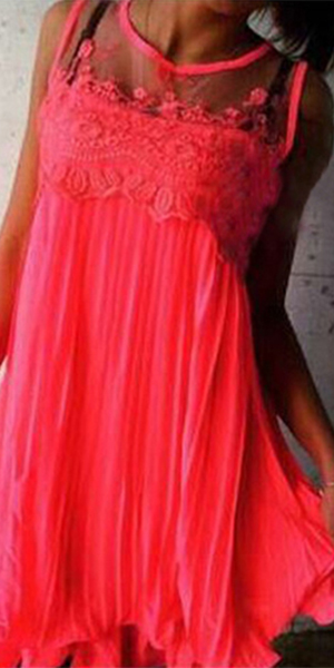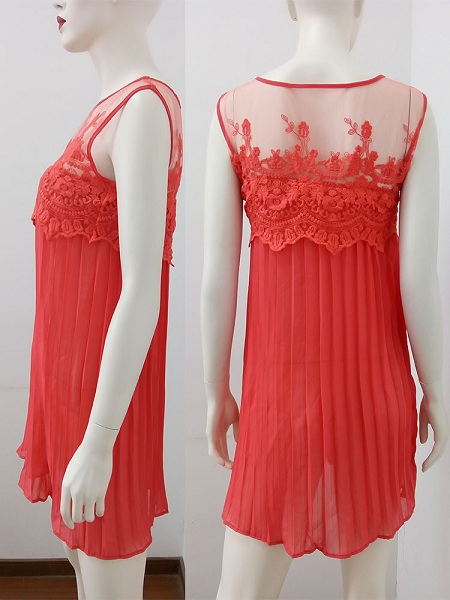 The dress is decorated with solid color and sleeveless patterns, elegant and stylish. The lace and
