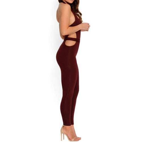 and sexy flavor. The jumpsuit is completed with solid color and sleeveless patterns, with low-cut and hollow out design,