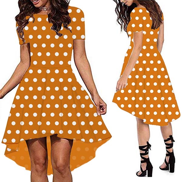 This dress makes it easy for any girl to look effortlessly charming. The dots printed pattern design makes