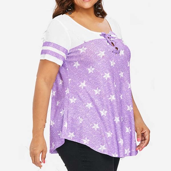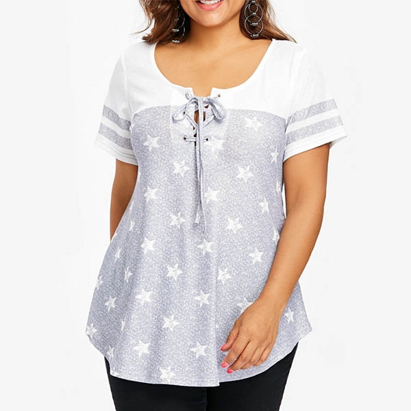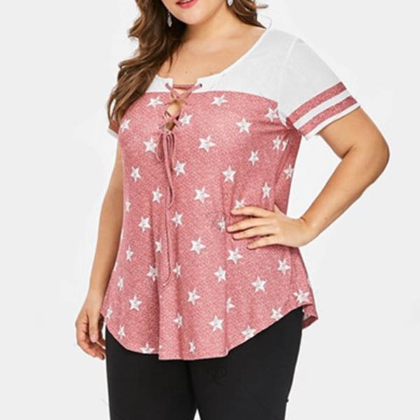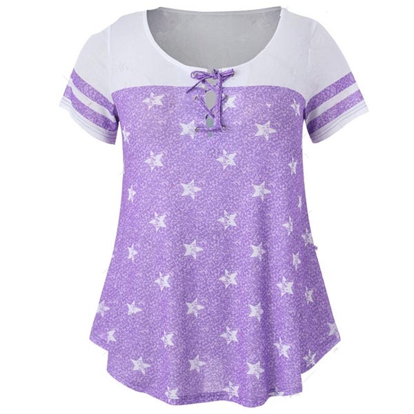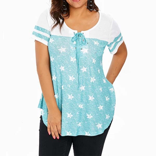 with short sleeve and round neck design,the lace-up design at the neckline part can boost its charm.